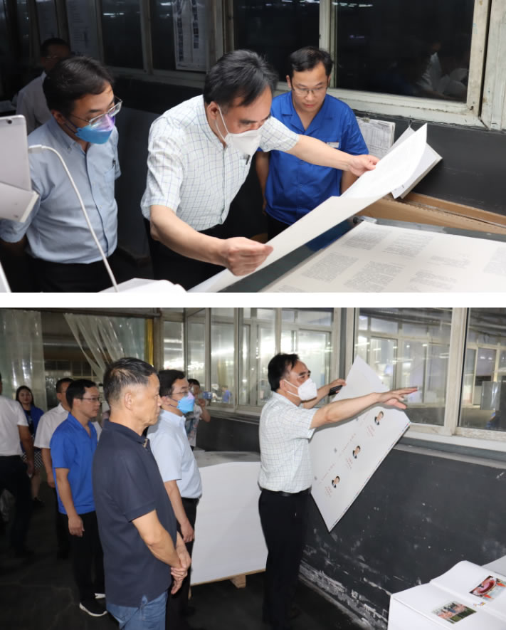 7月5日中國外文出版發(fā)行事業(yè)局副局長(cháng)陸彩榮等領(lǐng)導蒞臨鴻發(fā)印務(wù)視察指導工作